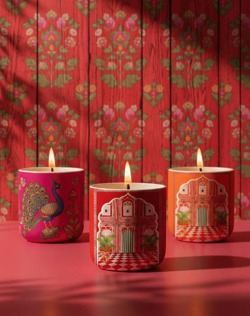 - Corporate gifting candles with premium print finish